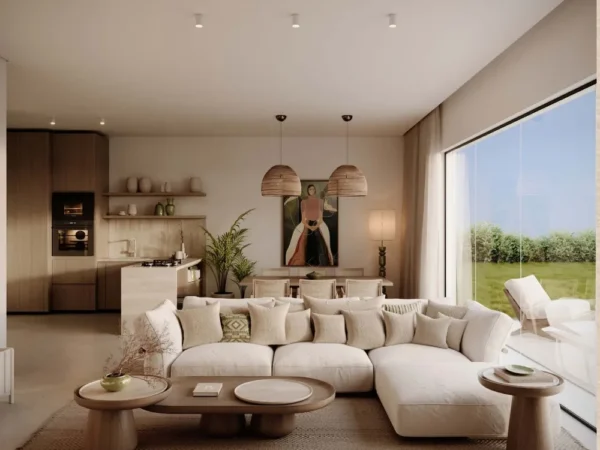 تصميم داخلي متوازن بين الخشب، الألوان الترابية، والخامات الطبيعية